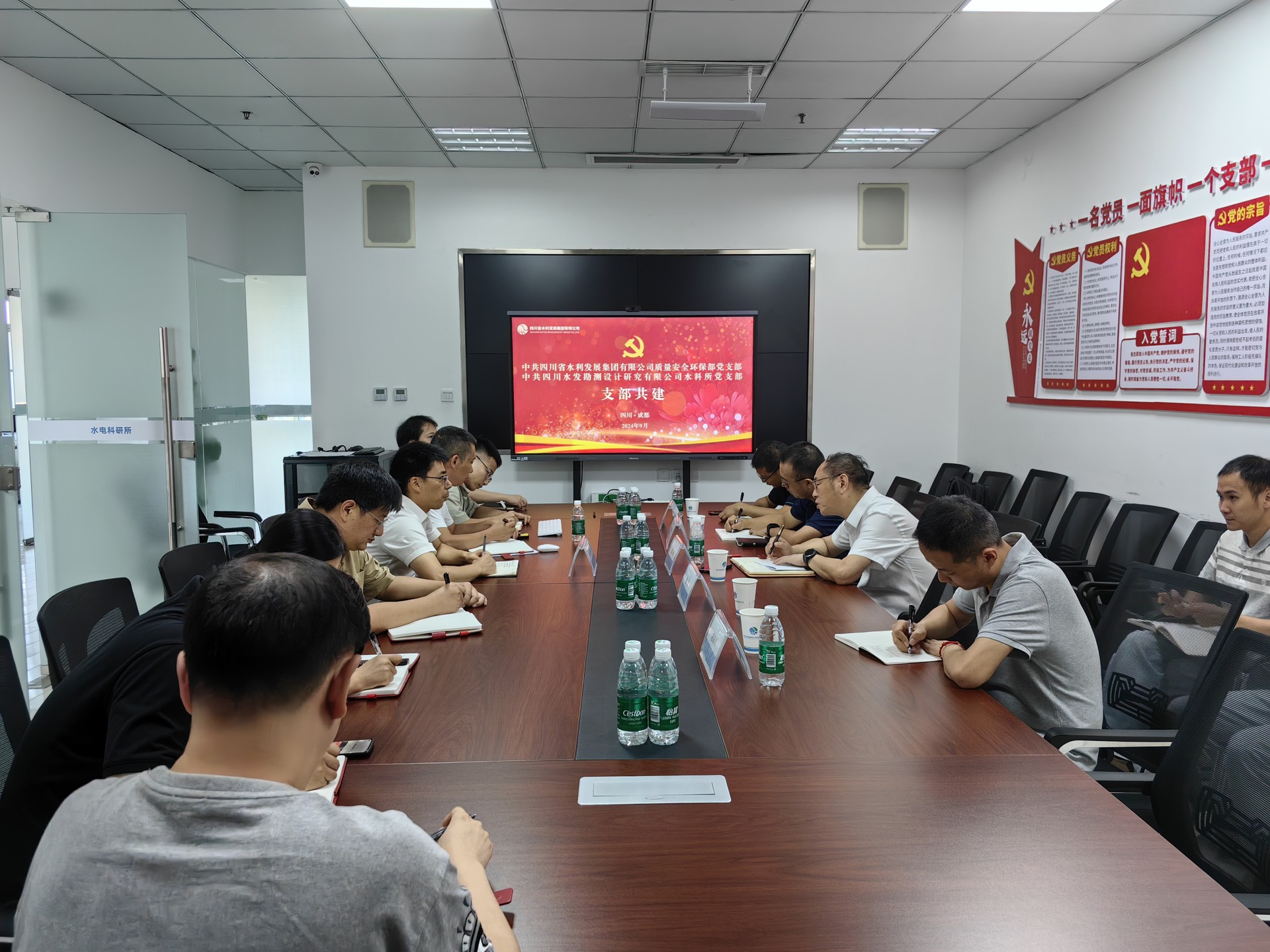 為推動(dòng)黨的二十屆三中全會(huì)精神深入人心,更好地用黨的二十屆三中全會(huì)精神統(tǒng)一思想、凝聚共識(shí),9月11日,集團(tuán)質(zhì)量安全環(huán)保部黨支部與設(shè)計(jì)公司水電科研所黨支部開(kāi)展“攜手啟航 共學(xué)二十屆三中全會(huì) 銘記使命再出發(fā) 互促共進(jìn) 筑夢(mèng)新時(shí)代新征程”支部結(jié)對(duì)共建主題黨日活動(dòng)。集團(tuán)安環(huán)部支部書(shū)記朱坤一行4人及水科所黨支部全體黨員職工共計(jì)24人參與。