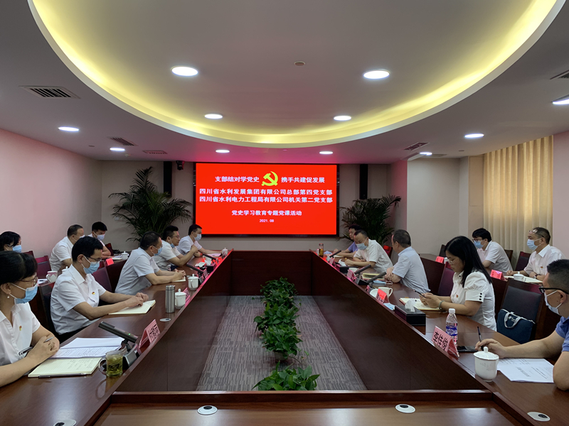 2021年8月4日,省水發(fā)集團(tuán)總部第四黨支部與工程局公司機(jī)關(guān)第二黨支部在工程局公司成都總部會議室聯(lián)合開展“支部結(jié)對學(xué)黨史.攜手共建促發(fā)展”黨史學(xué)習(xí)教育專題黨課活動。集團(tuán)黨委委員、工程局公司黨委書記、董事長代勇,集團(tuán)黨委委員、總工程師黃永沾,集團(tuán)副總經(jīng)理隆文非以普通黨員身份參加所在支部組織的活動。