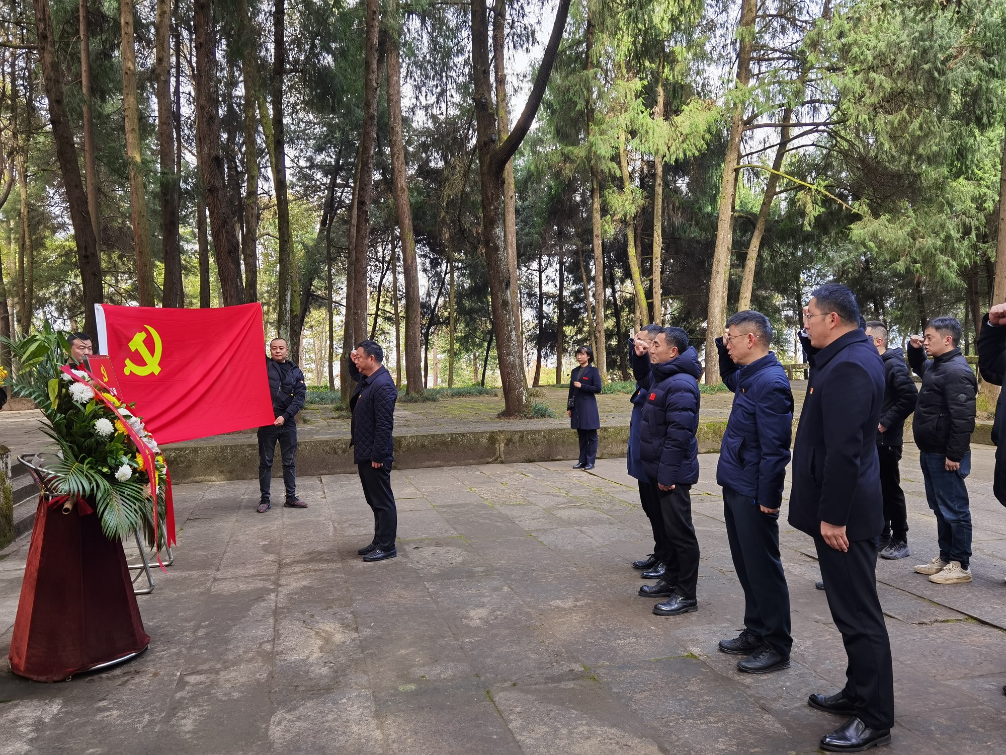 在通江縣王坪烈士陵園,從“鐵血丹心”廣場拾級(jí)而上,公司黨委副書記、副總經(jīng)理郎波、公司黨委副書記、紀(jì)委書記陳雷、公司黨委委員、副總經(jīng)理袁本松率公司黨員、入黨積極分子一行來到烈士紀(jì)念碑前,莊嚴(yán)肅穆的肅立,默哀鞠躬,向長眠于此的革命英烈表達(dá)無盡的哀思和敬仰。郎波代表公司黨委向革命先烈敬獻(xiàn)花籃,機(jī)關(guān)黨支部書記葉發(fā)科帶領(lǐng)黨員同志在鮮紅的黨旗前,重溫了入黨誓詞。