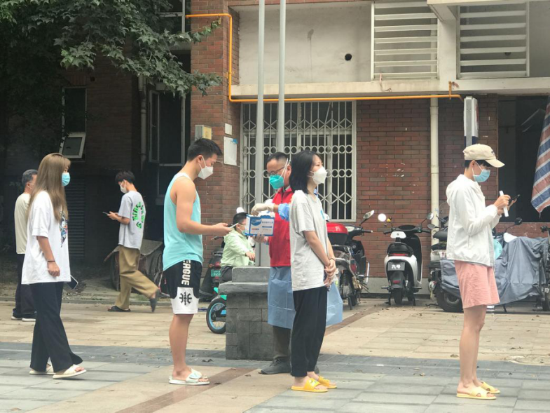 工程設(shè)計(jì)一分院廖大勇正在引導(dǎo)學(xué)生優(yōu)先進(jìn)行核酸檢測(cè)