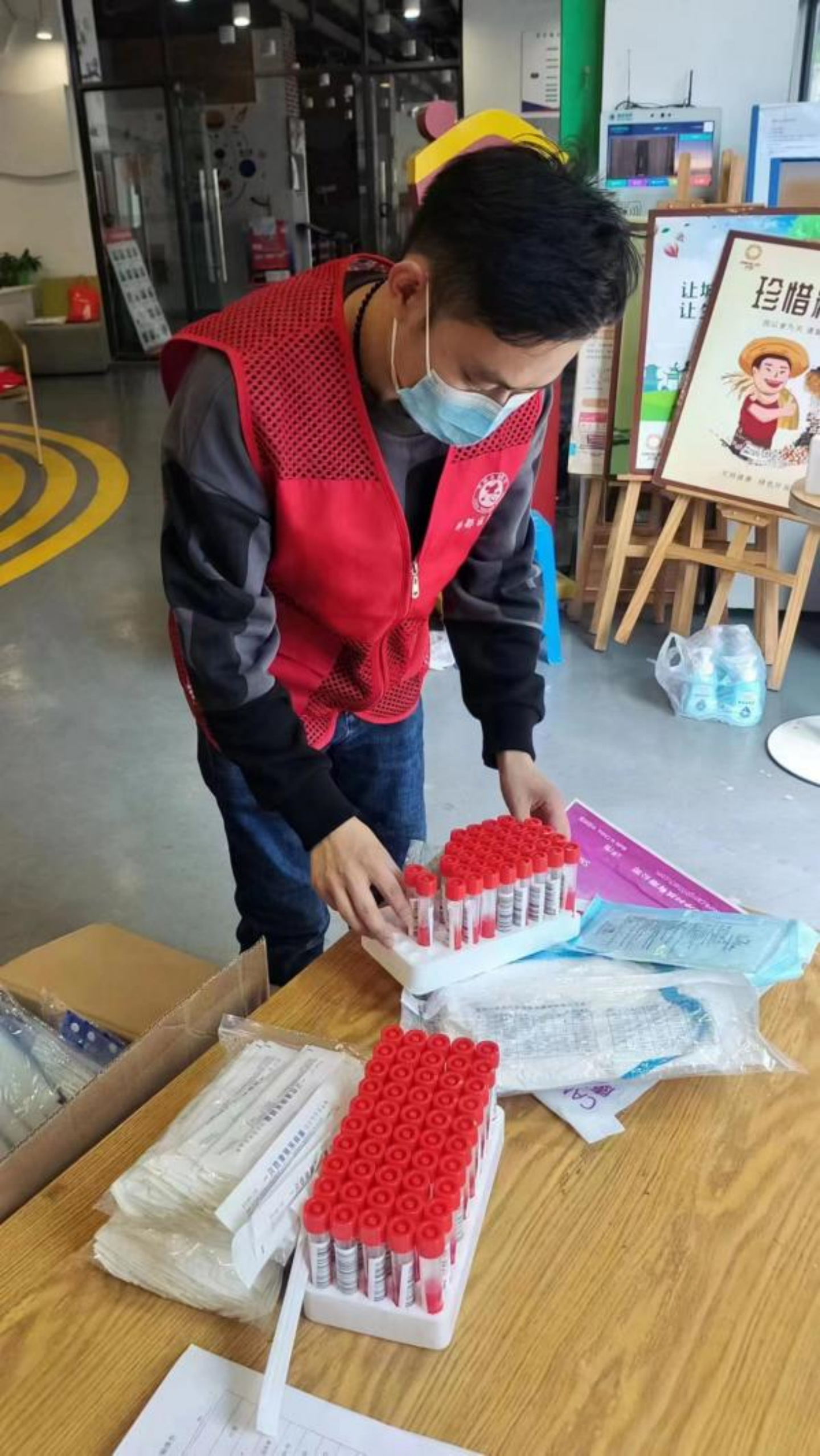 工程設(shè)計(jì)二分院黃志剛正在發(fā)放核酸檢測(cè)棉簽