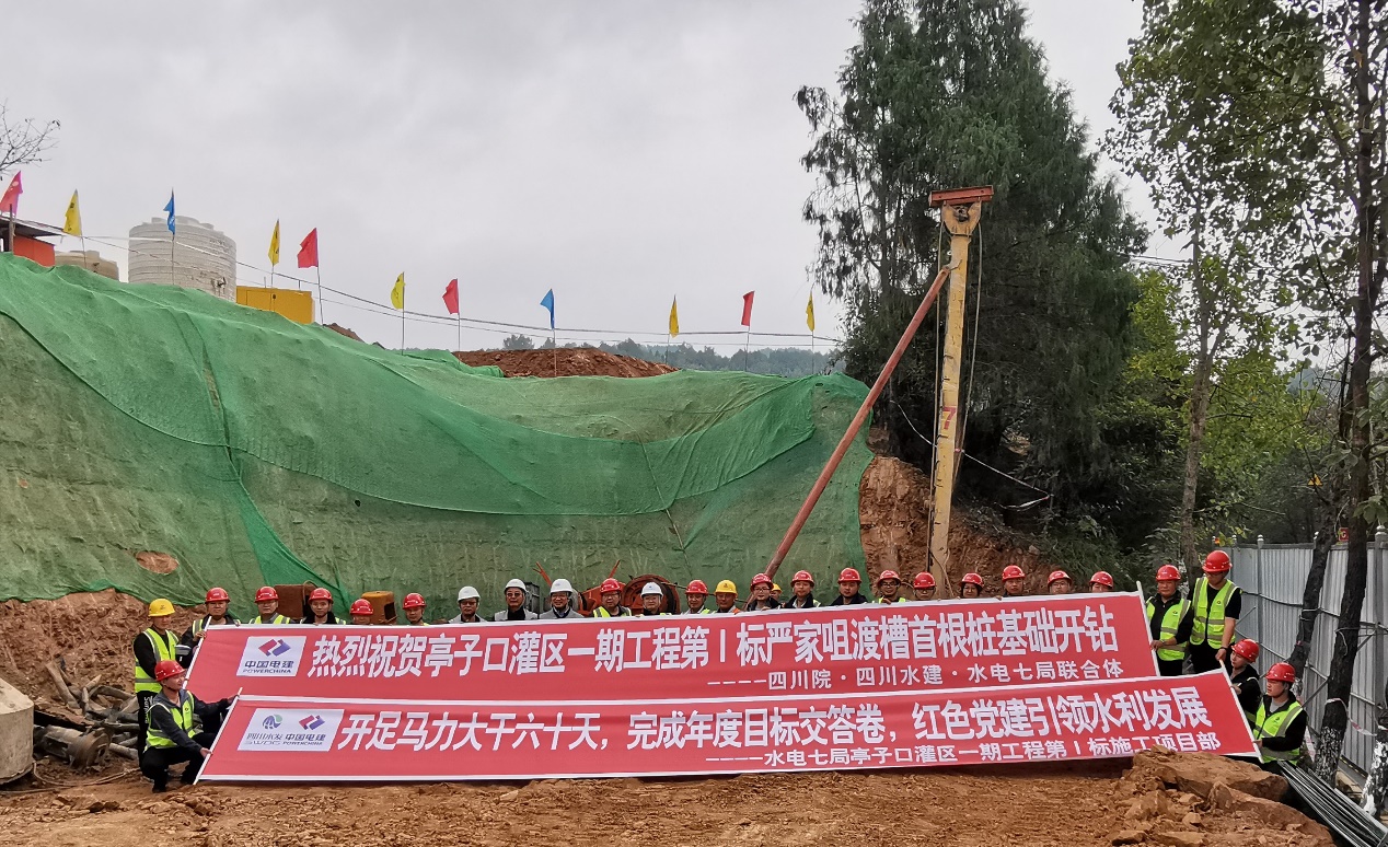 11月5日,由設(shè)計(jì)公司-建設(shè)公司-水電七局聯(lián)合體亭子口灌區(qū)一期工程設(shè)計(jì)-采購-施工總承包(EPC)第I標(biāo)項(xiàng)目部承建的嚴(yán)家咀渡槽首根樁基順利開工,這是繼亭子口灌區(qū)一期工程Ⅲ標(biāo)段桐子壩渡槽后又一標(biāo)志性工程建設(shè)。根據(jù)該部位地質(zhì)情況,樁基采用沖擊方式鉆進(jìn)。