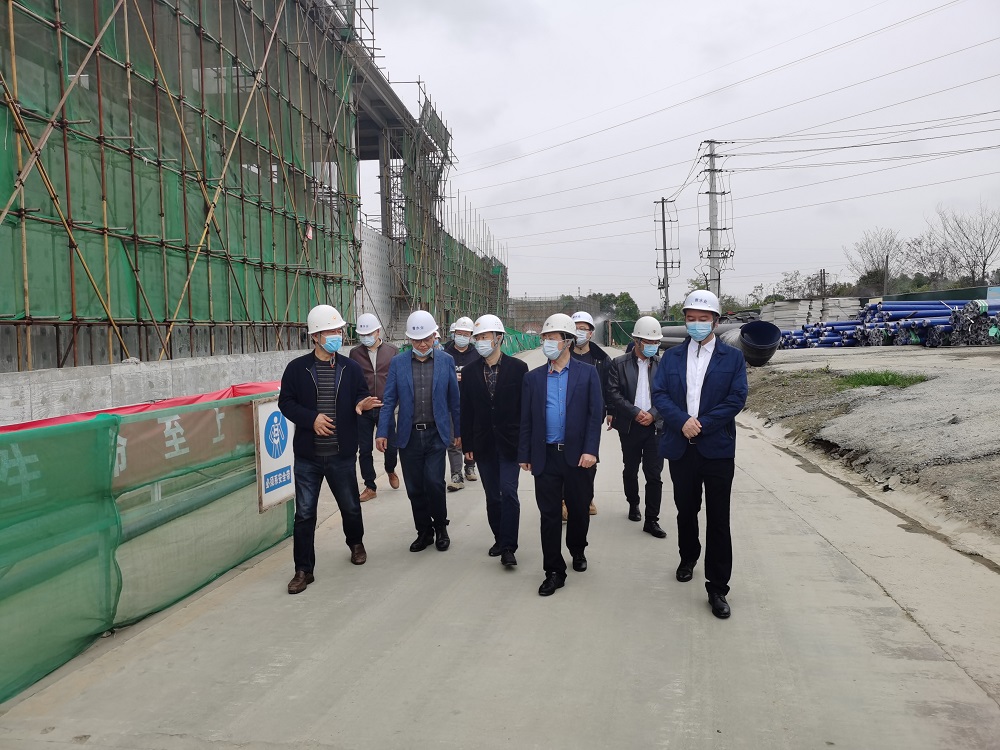 鐘杰董事長一行首先前往成都青白江水業(yè)股份有限公司,先后視察了該公司20T自來水廠擴建項目工地和現(xiàn)有自來水生產(chǎn)線,詳細詢問了工程規(guī)模、建設進度、質量控制、安全生產(chǎn)等情況,聽取了成都青白江水業(yè)股份有限公司經(jīng)營班子工作匯報。