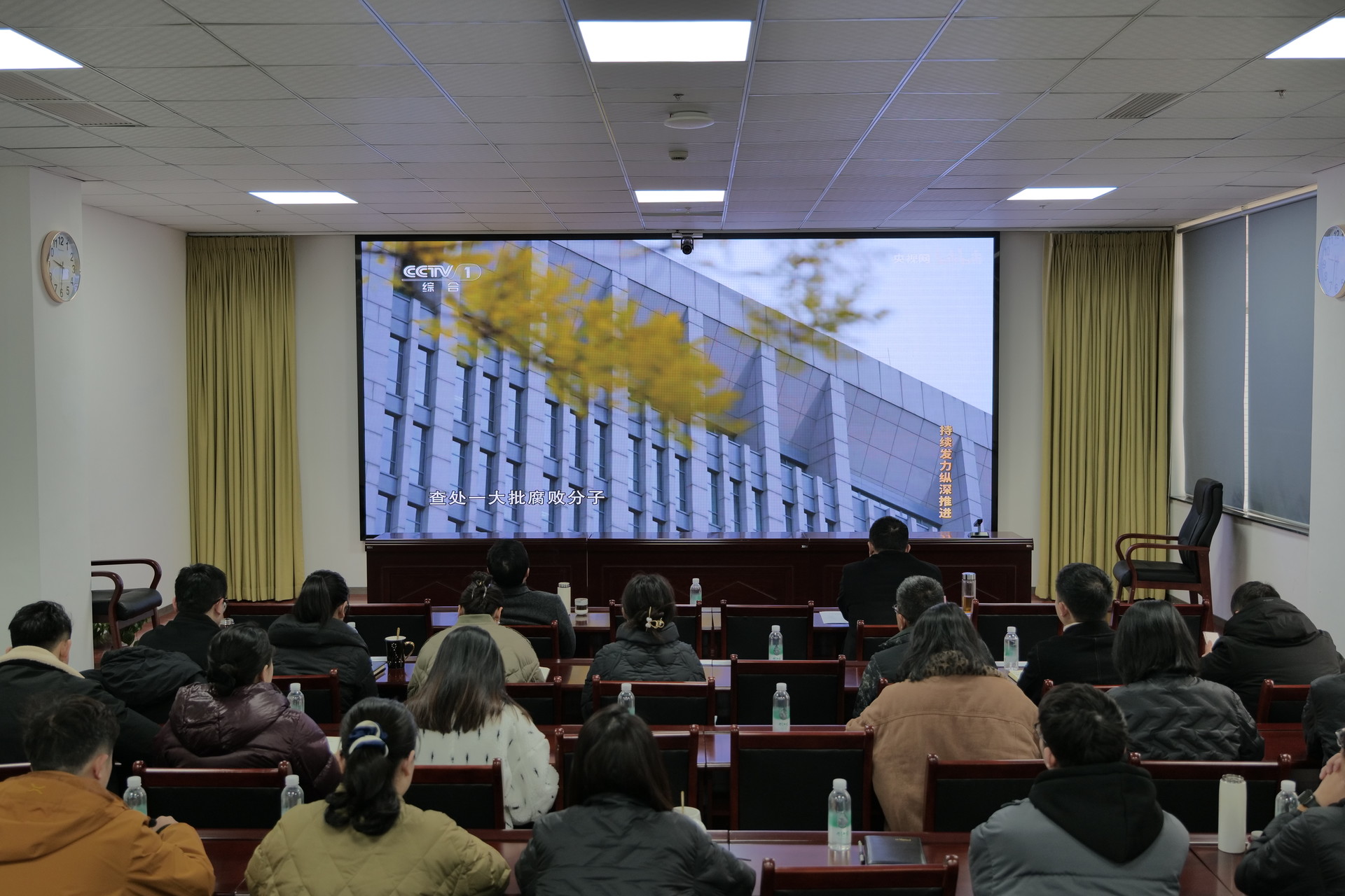 會(huì)上,全體參會(huì)人員集中觀看了年度反腐專題片《持續(xù)發(fā)力縱深推進(jìn)》第四集《一體推進(jìn)“三不腐”》。