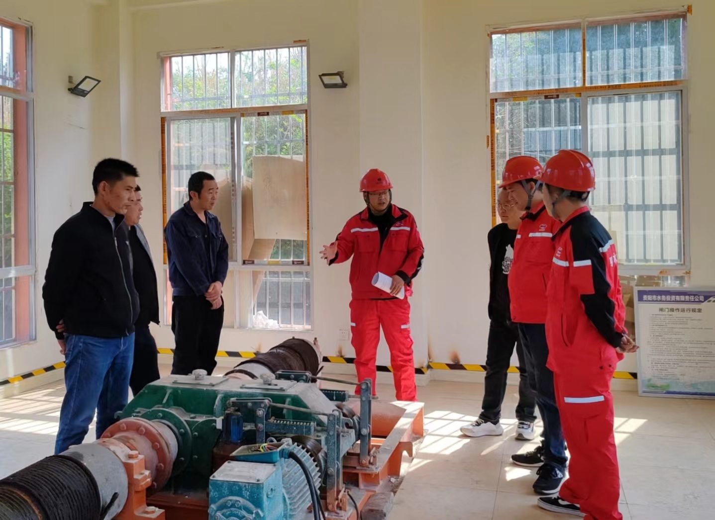 為盡快讓毗河春水潤澤千家萬戶,在明確了方向目標后,建設(shè)公司迅速完成了任務(wù)分配,并開展“毗河供水一期工程春灌應(yīng)急調(diào)水閘門啟閉機專項運行操作規(guī)程培訓”。本次培訓以現(xiàn)場理論講解和實地操作為主,對下屬分公司參與春灌工作人員進行了安全培訓和啟閉機運行培訓,并就培訓過程中發(fā)現(xiàn)的問題和困難進行了研究,為建設(shè)公司以“水利鐵軍”精神完成春灌應(yīng)急供水打好了堅實的基礎(chǔ)。