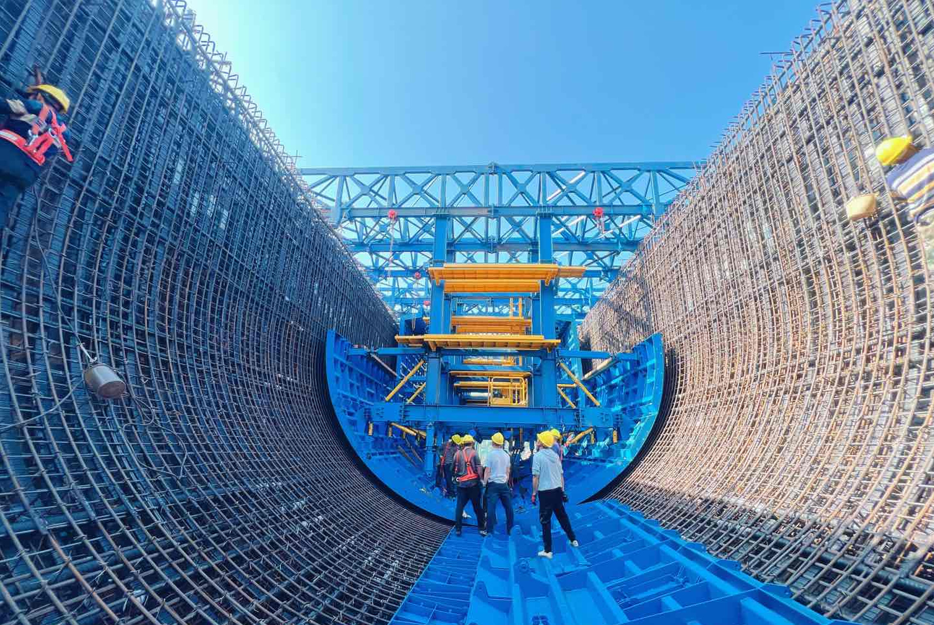 自2021年4月項(xiàng)目進(jìn)場(chǎng)施工以來,四川水發(fā)向家壩灌區(qū)公司強(qiáng)化要素資源保障和綜合統(tǒng)籌調(diào)度,組織參建各方全力以赴攻堅(jiān)克難。一是開展了槽身1:1原型仿真試驗(yàn),全面檢驗(yàn)設(shè)計(jì)參數(shù)及施工工藝,對(duì)發(fā)現(xiàn)的問題提出了優(yōu)化措施之后再進(jìn)行正式的槽身施工。二是根據(jù)現(xiàn)場(chǎng)環(huán)境實(shí)際,創(chuàng)新性的將托架支撐和膺架支撐進(jìn)行了結(jié)合,形成了“托-膺架”支撐系統(tǒng),為工程的安全施工創(chuàng)造了良好的施工場(chǎng)地。三是聯(lián)合國(guó)內(nèi)優(yōu)秀的模板制造商,研發(fā)了“大直徑高架U型渡槽分段自行模板裝備”,降低了模板的安拆、吊裝風(fēng)險(xiǎn),并大大地提高了施工工效。四是大力開展創(chuàng)新工作,采取澆筑一倉(cāng)總結(jié)一倉(cāng)的方式,及時(shí)討論研究解決施工過程中發(fā)現(xiàn)的問題,在施工過程中,共形成了6項(xiàng)專利技術(shù),總結(jié)了10項(xiàng)新型的施工工法。
