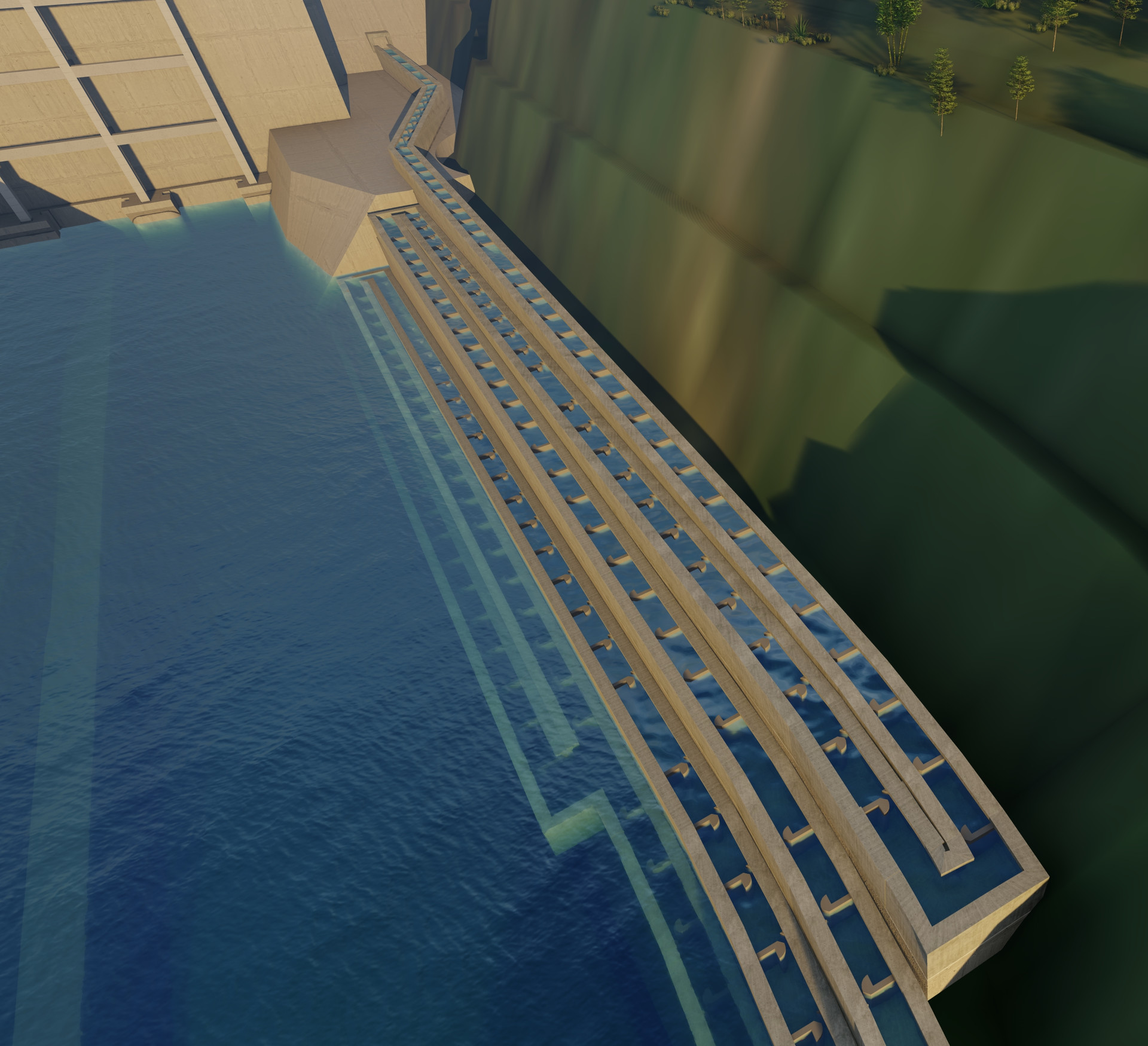 黃石盤水庫魚道工程采用了一種能夠適應庫水位變幅的升魚塔結構,該結構已獲得國家實用新型專利。升魚塔結構采用升船機的原理,自動控制升魚塔內水位的自由升降,實現(xiàn)升魚塔內水位與上游水庫任意水位銜接,達到了魚類通過升魚塔自由進入上游水庫的目的。
