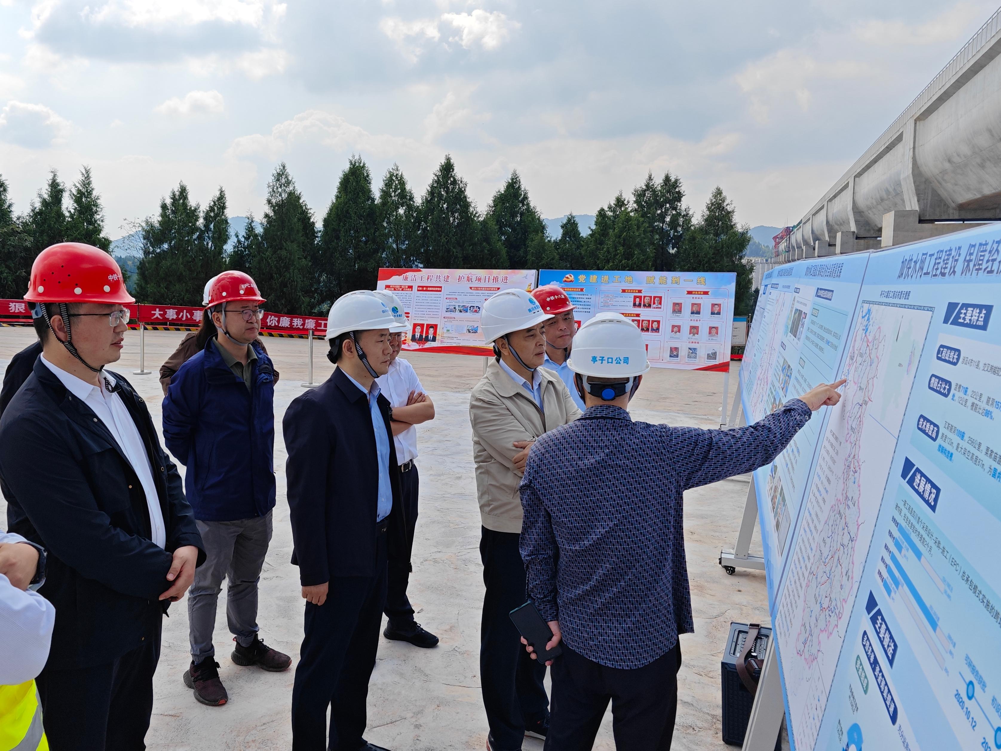 督導(dǎo)組一行實(shí)地踏勘亭子口灌區(qū)一期工程EPC第II標(biāo)段老吳壩渡槽施工現(xiàn)場(chǎng),詳細(xì)聽取了亭子口公司主要負(fù)責(zé)同志關(guān)于工程項(xiàng)目建設(shè)、黨建進(jìn)工地、廉潔工程共建、質(zhì)量安全和信息化系統(tǒng)等重點(diǎn)工作推進(jìn)情況匯報(bào)。