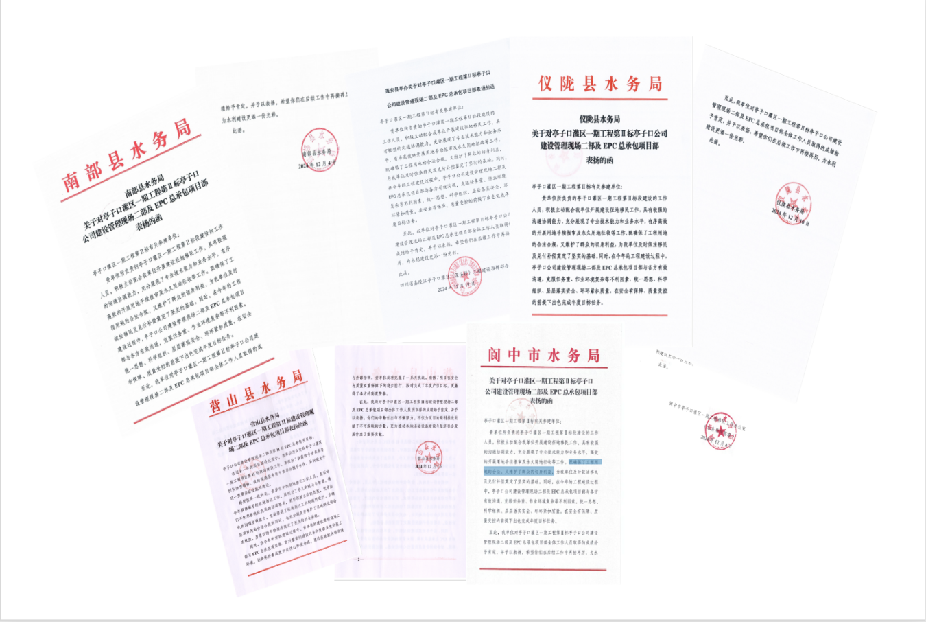 近日,亭子口灌區(qū)一期工程EPC第Ⅱ標(biāo)段項(xiàng)目部收到閬中市、儀隴縣、蓬安縣、南部縣、營山縣等五縣(市)水務(wù)局的聯(lián)合表揚(yáng)。