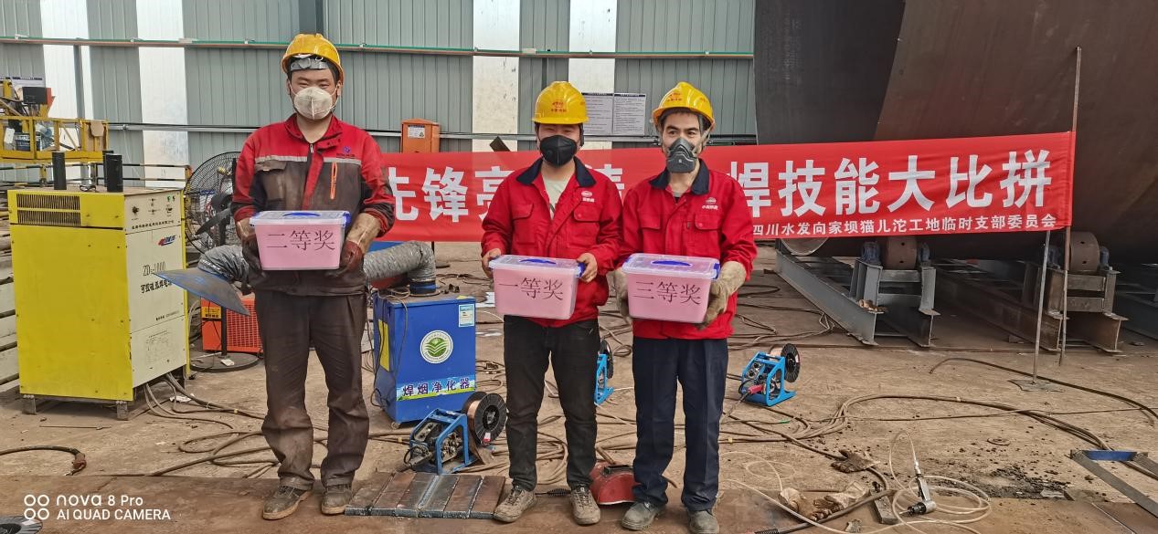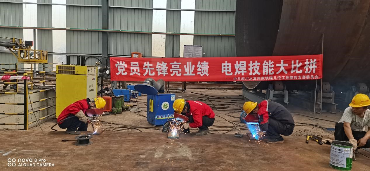 為加強(qiáng)項(xiàng)目技能人才隊(duì)伍建設(shè),激發(fā)創(chuàng)新實(shí)干熱情。3月27日,四川水發(fā)向家壩貓兒沱工地工臨時(shí)黨支部組織作業(yè)人員在貓兒沱江底隧洞始發(fā)井壓力鋼管加工廠開展電焊技能比武。