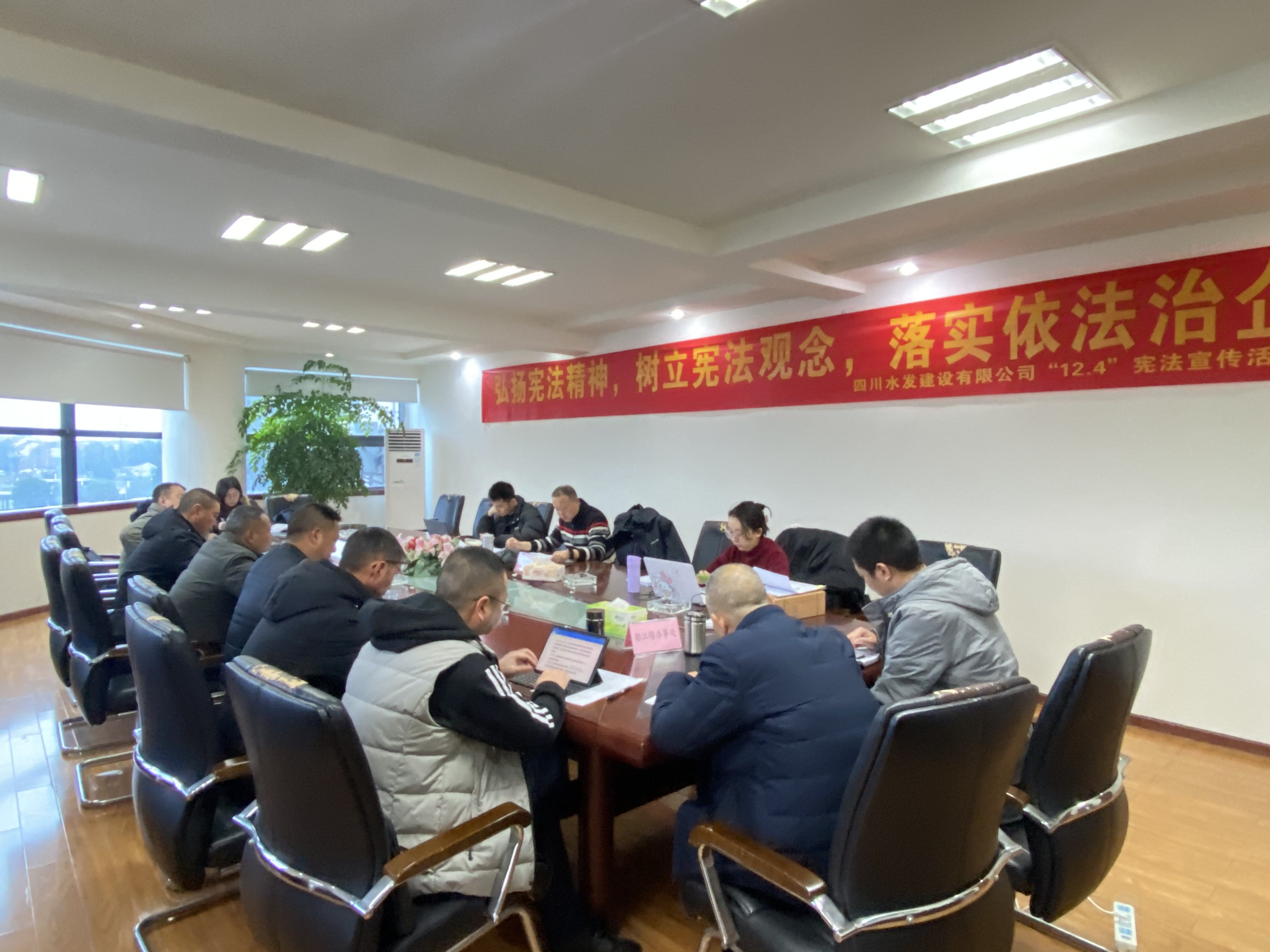 集團(tuán)總部迅速安排部署,以“憲法宣傳周”作為學(xué)習(xí)宣傳貫徹二十大精神的重要契機(jī),積極組織各下屬企業(yè)開展“法治水發(fā)——憲法進(jìn)企業(yè)”普法宣傳活動(dòng)。集團(tuán)領(lǐng)導(dǎo)高度重視,以各級(jí)黨委理論學(xué)習(xí)中心組為載體,專題學(xué)習(xí)傳達(dá)黨的二十大報(bào)告精神。同時(shí)集團(tuán)總部將內(nèi)部宣貫載體作為黨的二十大精神、憲法宣傳的重要補(bǔ)充,組織全體職工線上觀看參加2022年四川省“紀(jì)念現(xiàn)行憲法公布實(shí)施40周年”主題知識(shí)競(jìng)賽暨全省憲法宣傳周主題活動(dòng),充分領(lǐng)會(huì)憲法精神。