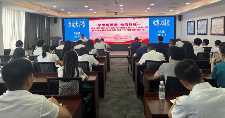 自今年6月以來(lái),水發(fā)集團(tuán)在落實(shí)水利廳“學(xué)思想見行動(dòng) 做新時(shí)代水利人”主題活動(dòng)中,緊扣主題教育各項(xiàng)要求,聯(lián)系集團(tuán)實(shí)際,創(chuàng)新啟動(dòng)了主題教育1+7“水發(fā)大講堂”。集團(tuán)黨委精心謀劃,集團(tuán)領(lǐng)導(dǎo)率先垂范,以集團(tuán)黨委為中心,集團(tuán)黨委書記、董事長(zhǎng)鐘杰以《銘記光輝歷史 堅(jiān)守初心使命 矢志擔(dān)當(dāng)作為 建設(shè)四川水網(wǎng)》為題講授專題黨課,從銘記光輝歷史、不忘走過(guò)的路,堅(jiān)守初心使命、堅(jiān)定前行的路和矢志擔(dān)當(dāng)作為、走好腳下的路三個(gè)方面系統(tǒng)地闡述了集團(tuán)成立至今的發(fā)展歷程,推動(dòng)跨越發(fā)展全面崛起,實(shí)現(xiàn)集團(tuán)關(guān)鍵之年高質(zhì)量發(fā)展。
