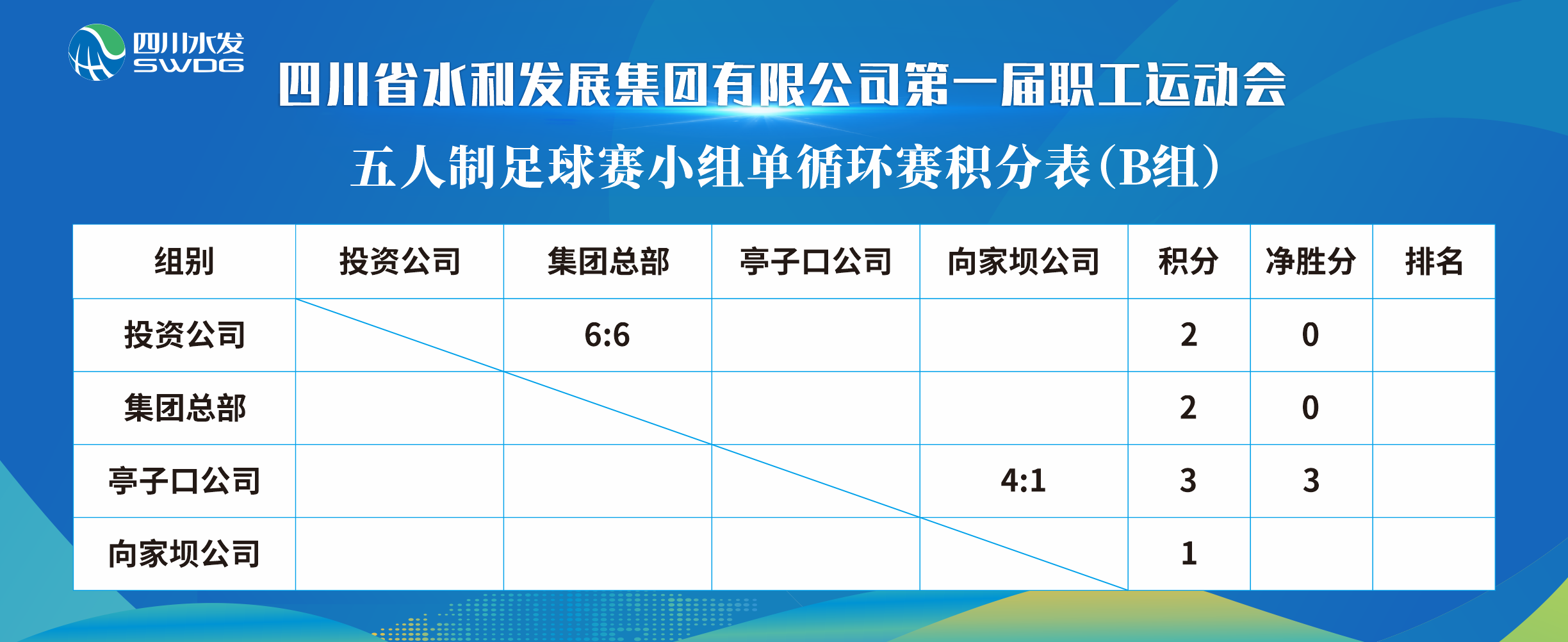 此次運(yùn)動(dòng)會(huì)分為2個(gè)階段。12月5日-12月8日為預(yù)賽階段,比賽項(xiàng)目包括:五人制足球賽、籃球賽、羽毛球混合團(tuán)體賽、乒乓球混合團(tuán)體賽,來自集團(tuán)總部及7個(gè)下屬公司共220余名運(yùn)動(dòng)員以循環(huán)賽和排位賽的方式角逐4個(gè)類別,8個(gè)決賽名額。12月9日,將舉行此次運(yùn)動(dòng)會(huì)開閉幕式,球類比賽決賽以及趣味運(yùn)動(dòng)會(huì)。