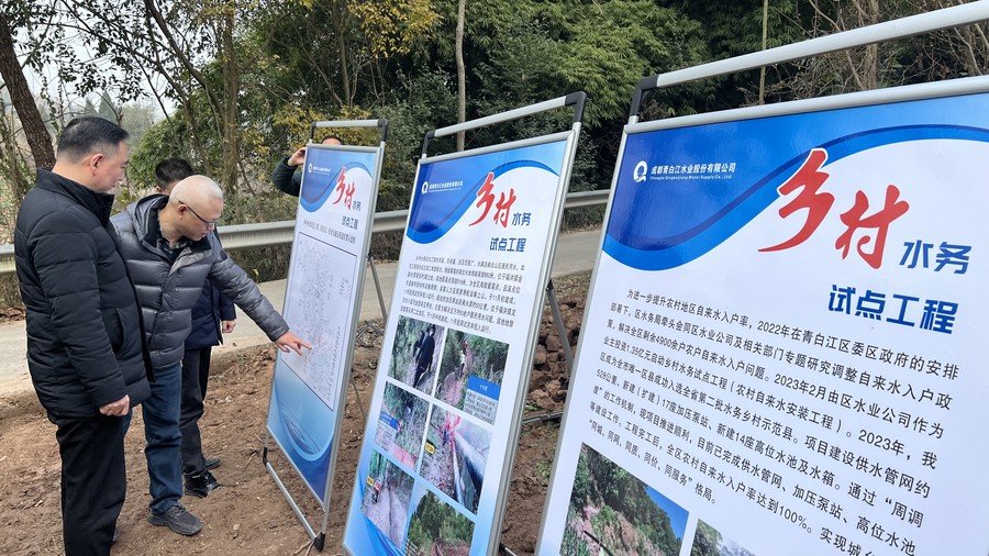 尹曉東一行首先前往青白江水業(yè)公司鄉(xiāng)村水務(wù)試點(diǎn)工程點(diǎn)位,查看了高位水池、加壓站運(yùn)維及自來水到組到戶情況。