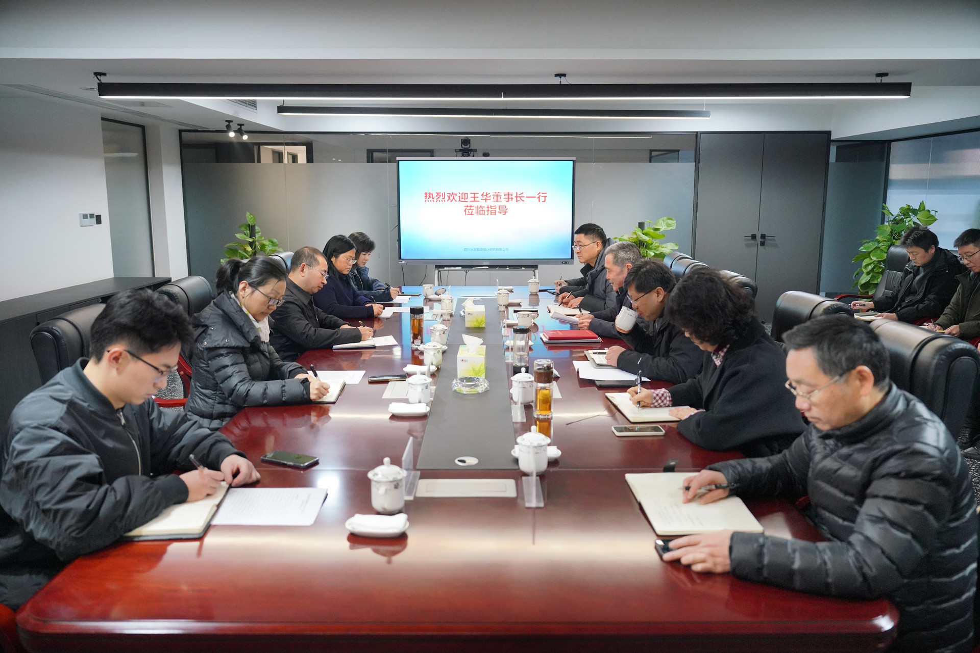 調(diào)研組一行聽取了設(shè)計(jì)公司關(guān)于改革發(fā)展和重大項(xiàng)目推進(jìn)情況匯報(bào)后,王華董事長指出,設(shè)計(jì)公司在六十年的發(fā)展歷程中,立足四川水利建設(shè),風(fēng)雨兼程、實(shí)干擔(dān)當(dāng)、碩果累累,對設(shè)計(jì)公司改革改制三年以來取得的階段性發(fā)展成果表示認(rèn)可。