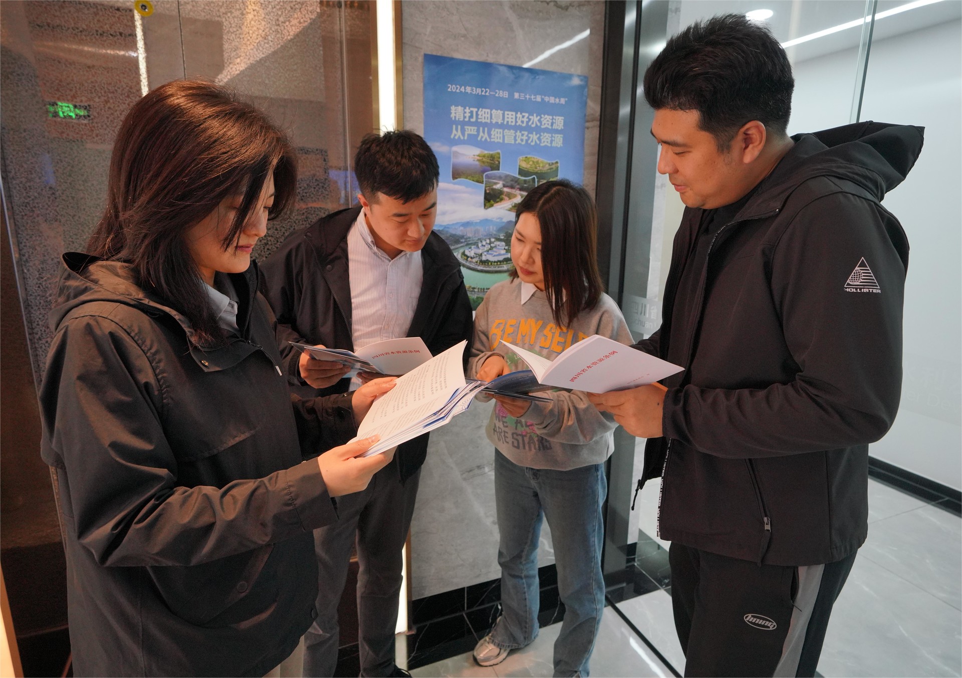 在集團總部,宣傳機連續(xù)播放中央電視臺紀錄片《治水記》,讓大家直觀感受在習近平總書記關于治水思想的指引下,中國水利建設取得的顯著成就,見證治水興國的戰(zhàn)略思想為糧食安全、經濟安全、社會安全、生態(tài)安全和國家安全提供的有力保障。同時,統(tǒng)籌下屬企業(yè)全面啟動世界水日、中國水周宣傳活動,傳遞節(jié)水理念,充分利用現(xiàn)有宣傳平臺,分發(fā)張貼宣傳海報和制作科普小視頻,展現(xiàn)集團在建工程對有效保護、利用水資源的工作成效。