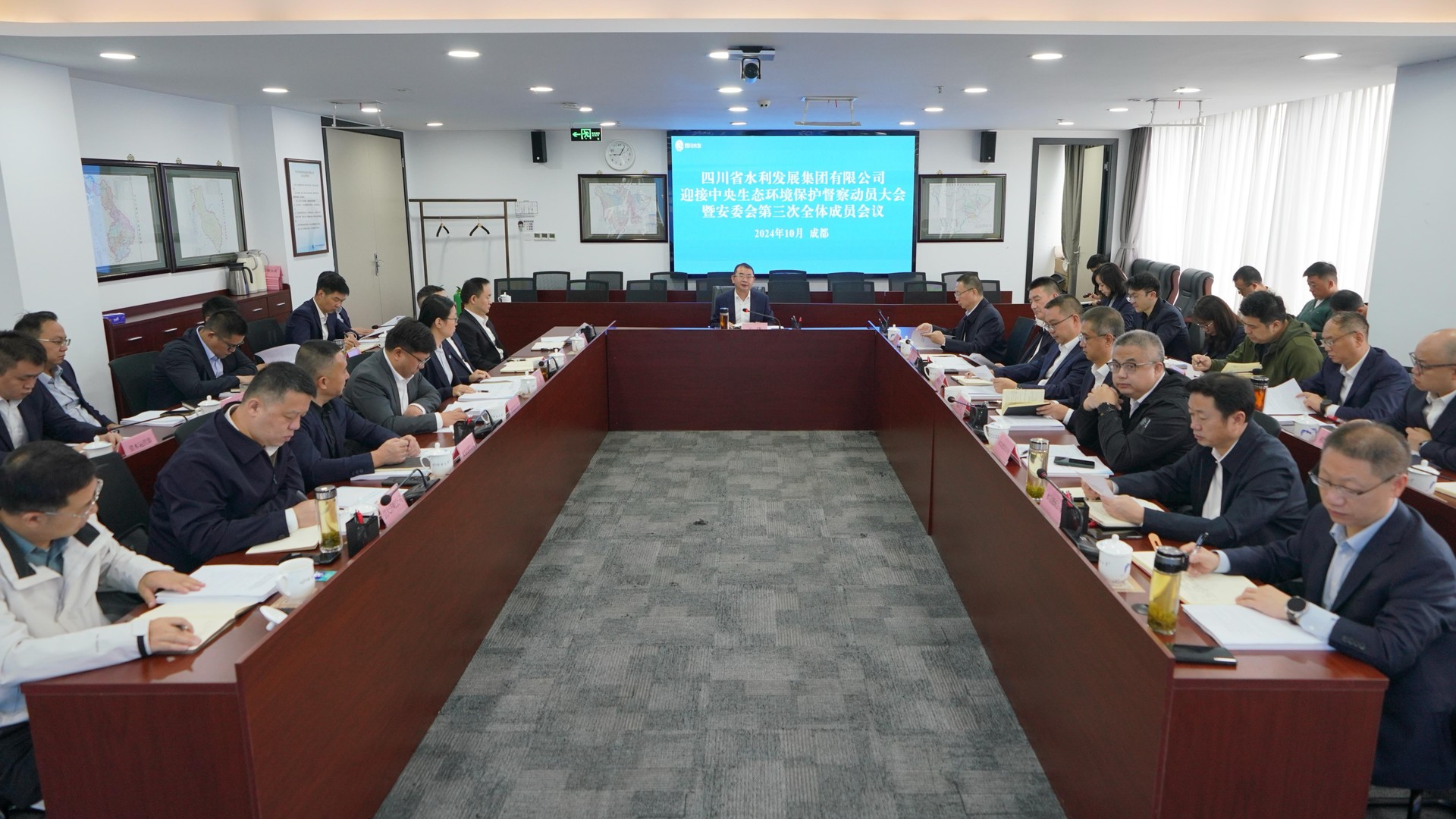 2024年10月18日,四川省水發(fā)集團(tuán)在中央第三生態(tài)環(huán)境保護(hù)督察組督察四川省動(dòng)員會(huì)后賡即安排部署相關(guān)工作。10月21日,四川省水發(fā)集團(tuán)組織召開迎接中央生態(tài)環(huán)境保護(hù)督察動(dòng)員大會(huì)暨安委會(huì)第三次全體成員會(huì)議。集團(tuán)黨委書記、董事長、環(huán)水保領(lǐng)導(dǎo)小組組長王華主持會(huì)議并講話。?