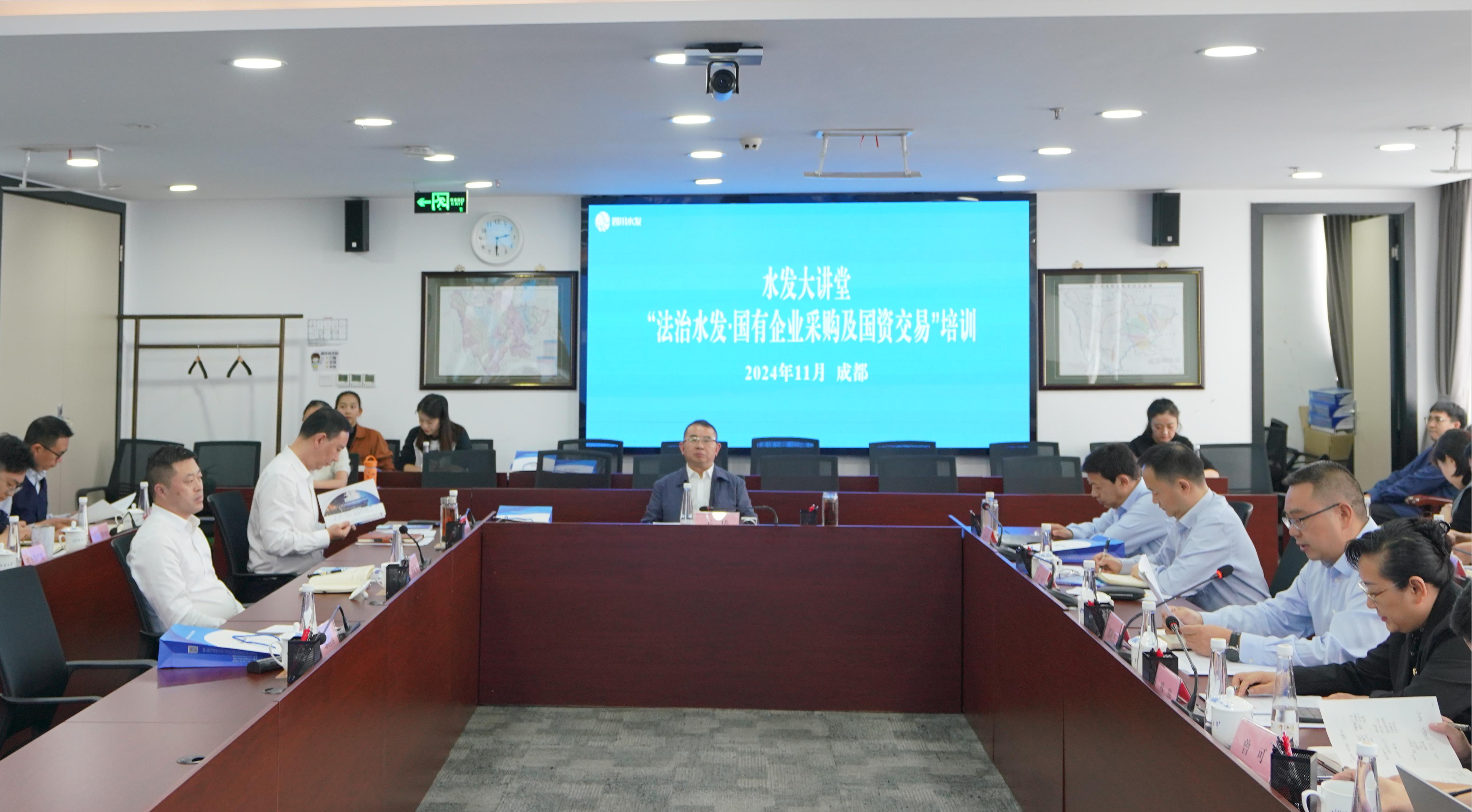 為提升集團(tuán)系統(tǒng)國資管理能力及企業(yè)采購管控能力,加強(qiáng)國有資產(chǎn)交易流轉(zhuǎn)管理,11月1日,集團(tuán)組織開展2024年“水發(fā)大講堂—法治水發(fā)·國有企業(yè)采購及國資交易”培訓(xùn),集團(tuán)副總經(jīng)理鄭祖杰主持會議,集團(tuán)黨委書記、董事長王華出席會議。?
