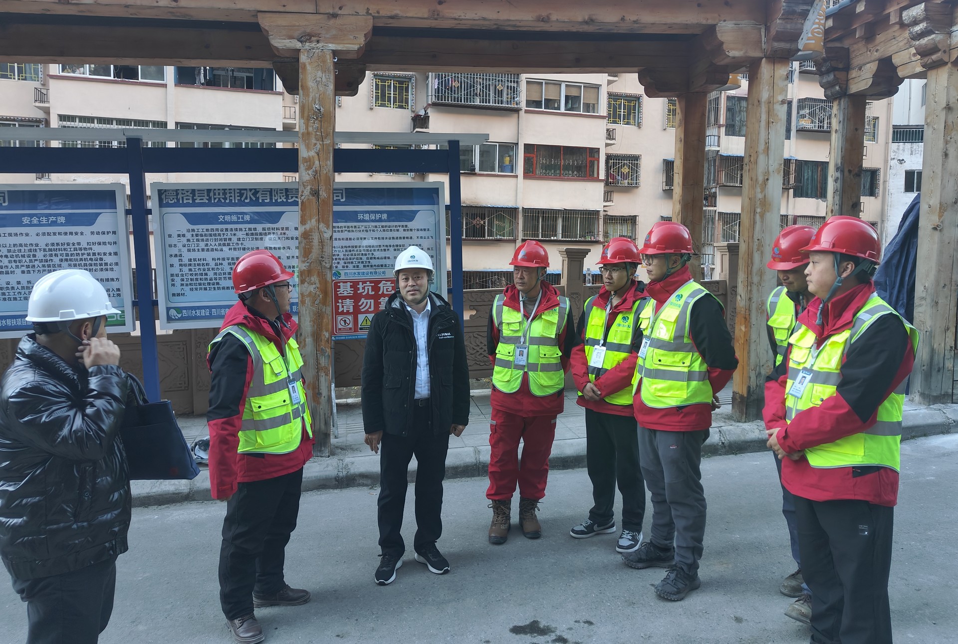 唐克飛深入施工現(xiàn)場(chǎng),實(shí)地查看了工程建設(shè)情況,認(rèn)真聽取了項(xiàng)目部對(duì)項(xiàng)目管理、施工進(jìn)度、縣企配合度等情況的匯報(bào)。他指出,德格縣包裝飲用水幫扶項(xiàng)目是集團(tuán)高度關(guān)注的項(xiàng)目,項(xiàng)目團(tuán)隊(duì)傳承了水利鐵軍優(yōu)良傳統(tǒng),面對(duì)復(fù)雜多變的高原施工環(huán)境,全體職工迎難而上,以永不服輸?shù)捻g勁、善作善成的干勁不斷創(chuàng)造施工條件,如期完成了封頂節(jié)點(diǎn)目標(biāo);希望項(xiàng)目部持續(xù)深化黨建引領(lǐng),努力深耕區(qū)域,以高質(zhì)量項(xiàng)目建設(shè)支撐高質(zhì)量發(fā)展。牢記囑托擔(dān)使命,聚力攻堅(jiān)譜新篇,實(shí)現(xiàn)幫扶工程有力度,百姓幸福有溫度。最后對(duì)項(xiàng)目管理提出四點(diǎn)要求: