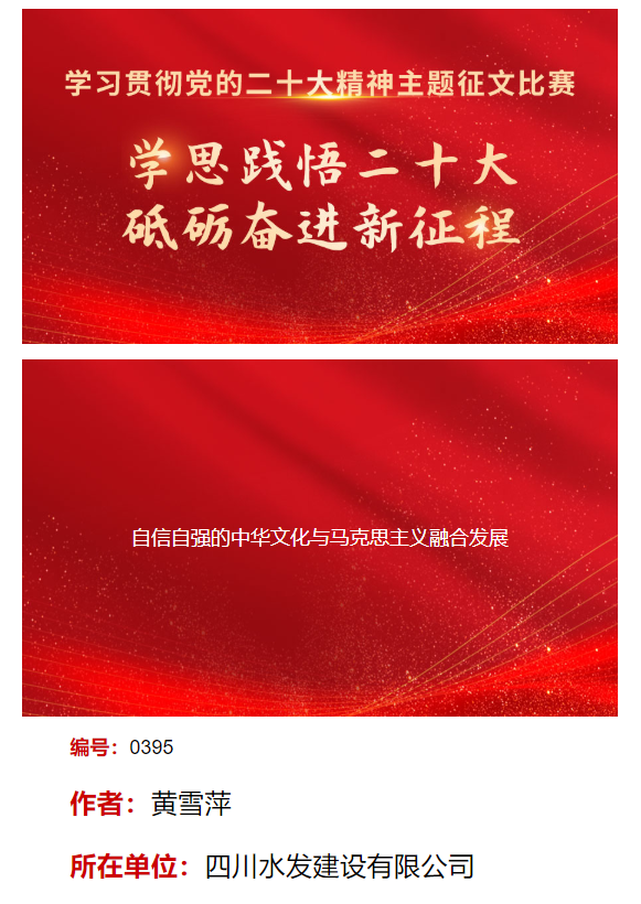 ? ? ? ?集團工會根據(jù)省總女職工委員會的要求,組織集團總部及下屬各單位積極開展“巾幗心向黨·奮進新征程”學習貫徹黨的二十大精神巾幗大學習答題挑戰(zhàn)賽和征文活動。堅持以學習貫徹黨的二十大精神為指引,強化集團女職工理論武裝,引領女職工做新征程的追夢人,在四川水網(wǎng)建設中凝聚女性力量。近期,集團喜報頻頻,發(fā)展計劃部榮獲“四川省直機關三八紅旗集體”,設計公司王靜榮獲“四川省三八紅旗手”,建設公司女職工黃雪萍的二十大征文在川觀新聞上發(fā)表,充分展現(xiàn)了集團女職工的風采。