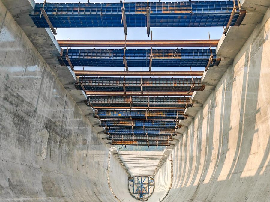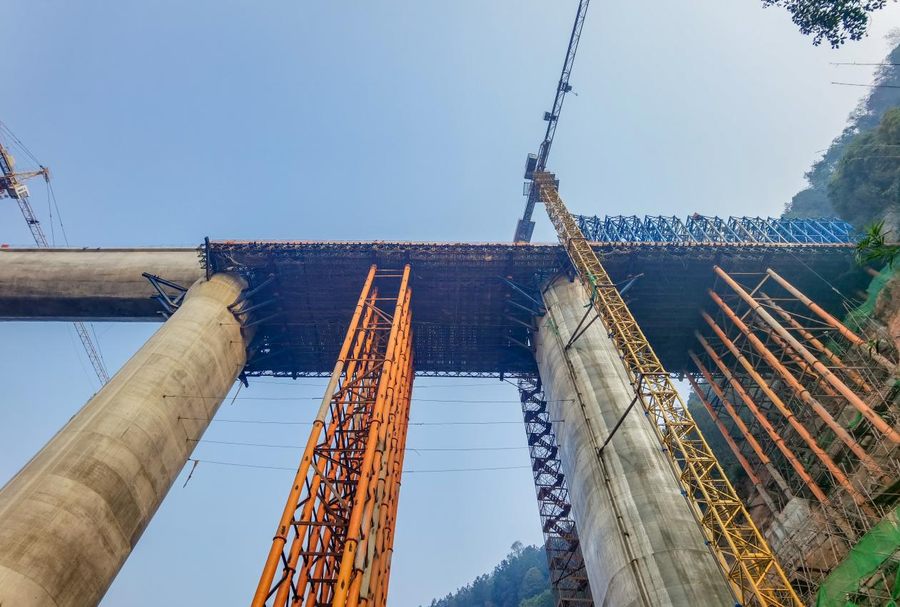 會(huì)詩溝渡槽位于宜賓市翠屏區(qū)思坡鎮(zhèn)會(huì)詩村,是向家壩灌區(qū)工程北總干渠第二流量段。該渡槽全長240米,共6跨,單跨最高高度為76米,槽身為薄壁U型結(jié)構(gòu),是向家壩灌區(qū)北總干渠一期一步工程最高渡槽,也是項(xiàng)目建設(shè)的重難點(diǎn)控制性工程。