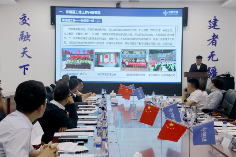 為充分發(fā)揮黨建工作舉旗定向的政治引領(lǐng)作用,有效推進(jìn)黨建與水利工程建設(shè)業(yè)務(wù)工作深度融合,切實(shí)發(fā)揮好基層黨組織戰(zhàn)斗堡壘作用和黨員先鋒模范作用,9月27日,亭子口灌區(qū)一期工程黨建進(jìn)工地暨“一企一品”創(chuàng)建工作推進(jìn)會(huì)在Ⅳ標(biāo)段中交四航局項(xiàng)目召開。會(huì)議由亭子口公司黨委副書記、工會(huì)主席劉平主持。亭子口公司黨委書記、董事長廖建強(qiáng),黨委委員、副總經(jīng)理劉飛出席會(huì)議。