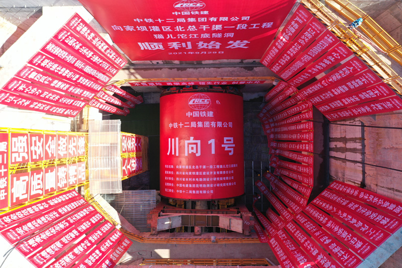 工作人員正在向家壩灌區(qū)北總干渠一期工程龍洞巖隧洞工程內(nèi)檢查電纜