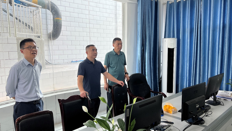 公司黨委專職副書記、紀委書記陳雷在三臺都宏公司、成都金堰公司對取水設(shè)施、制水車間、加壓站、泵房、輸配水管網(wǎng)、閘門、補氯點及生產(chǎn)經(jīng)營場所等重點設(shè)施和部位安全運營情況進行制水、供水以及運營安全督導(dǎo)檢查。陳雷要求,要深入開展水廠運行安全風(fēng)險辨識、分級管控及隱患排查治理,加強應(yīng)急值班值守,及時組織取水、制水、送水設(shè)施設(shè)備保養(yǎng)檢修歲修,要落實水源水、出廠水及管網(wǎng)水水質(zhì)安全檢測及信息發(fā)布。