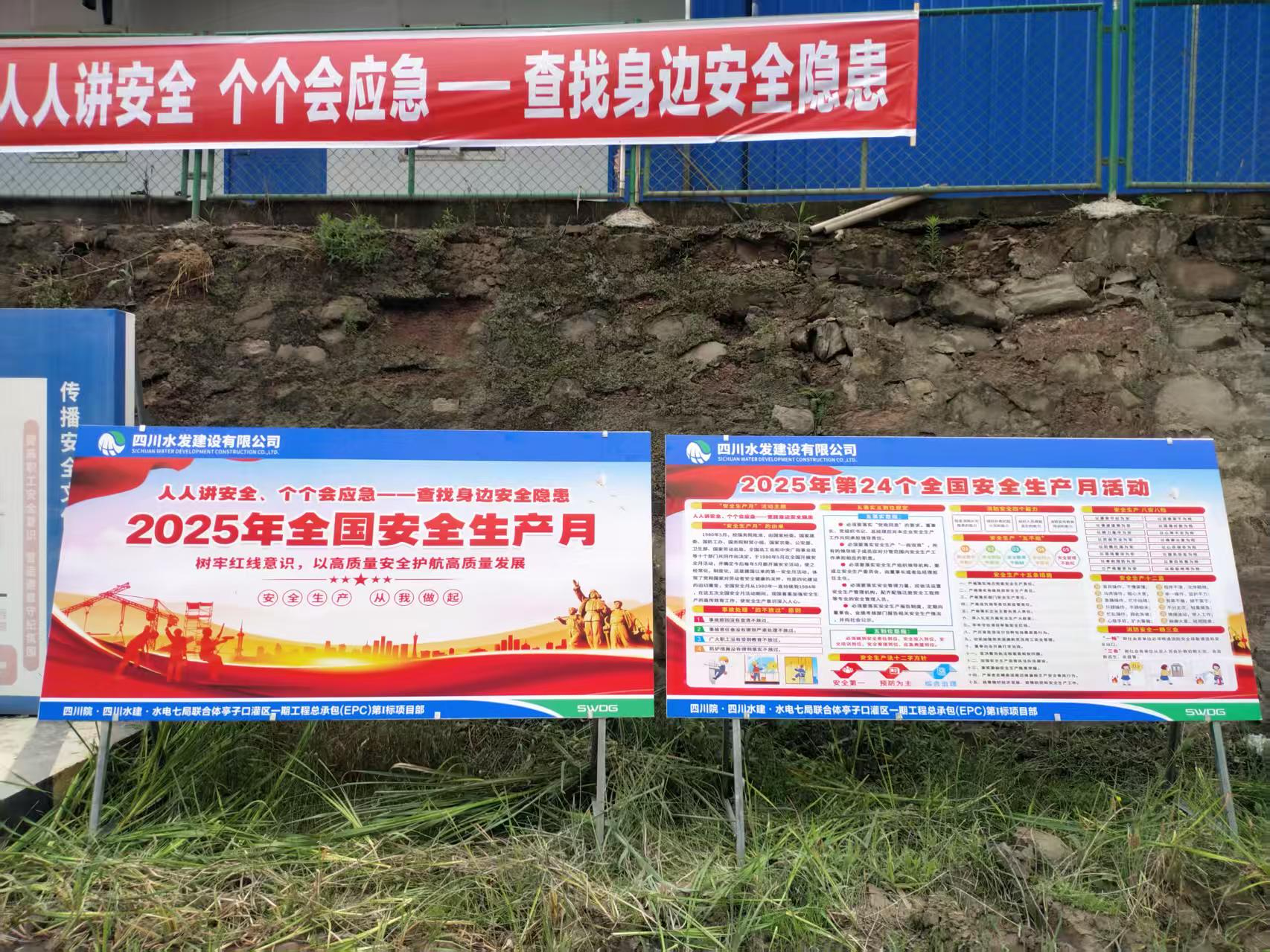 各標(biāo)段項目部在施工區(qū)域張貼“安全生產(chǎn)月”主題條幅、主題展板