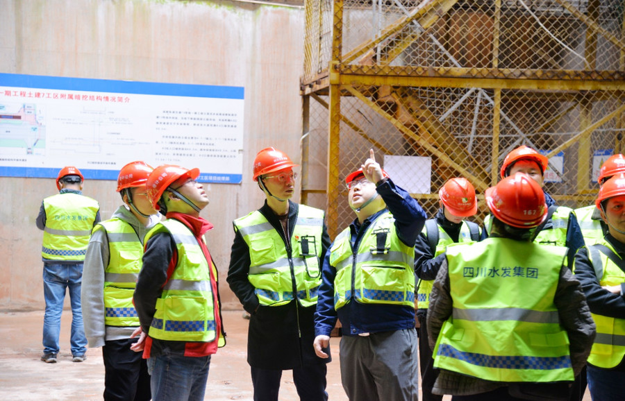 全體人員首先在現(xiàn)場施工人員的帶領(lǐng)下參觀成都軌道交通13號線一期工程土建7工區(qū)三圣花鄉(xiāng)站施工現(xiàn)場,就全國最大的大跨度中庭無柱弧形拱頂車站施工(幸福梅林站)、淺埋大直徑膨脹性黏土巖隧洞施工、初期支護(hù)、道路防沉降、220KV高壓線下安全防控措施等技術(shù)進(jìn)行了現(xiàn)場交流。