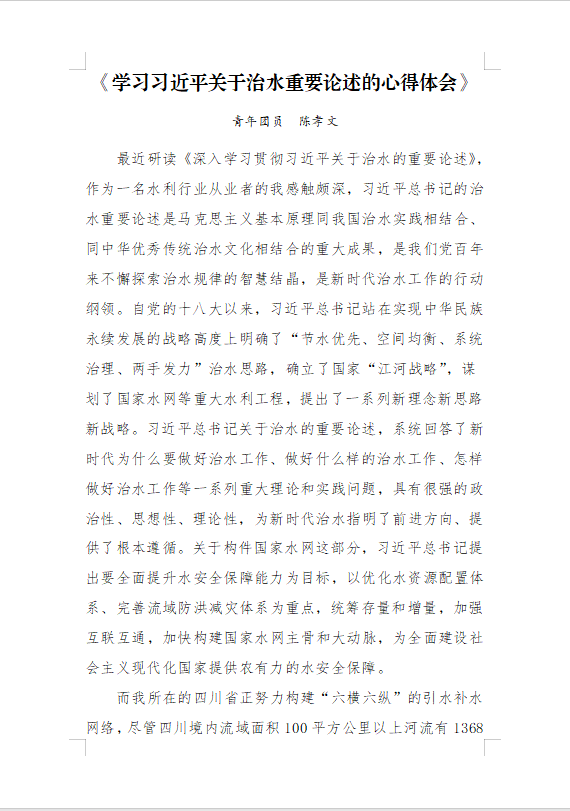 ? ? 設(shè)計公司組織青年理論學(xué)習(xí)小組成員、青年干部職工積極開展理論學(xué)習(xí),學(xué)習(xí)習(xí)近平新時代中國特色社會主義思想、習(xí)近平總書記來川視察重要指示精神等內(nèi)容,將全面深入學(xué)習(xí)貫徹黨的二十大精神和學(xué)習(xí)貫徹習(xí)近平新時代中國特色社會主義思想主題教育作為重點(diǎn),與水利設(shè)計主業(yè)相結(jié)合,通過政治理論學(xué)習(xí)不斷提高青年干部職工政治站位,鑄牢政治忠誠,提升業(yè)務(wù)水平。設(shè)計公司以團(tuán)支部為單位重點(diǎn)學(xué)習(xí)《深入學(xué)習(xí)貫徹習(xí)近平關(guān)于治水的重要論述》,并結(jié)合崗位勘設(shè)工作,撰寫讀書體會300余篇,將學(xué)習(xí)成果轉(zhuǎn)化為武裝頭腦、指導(dǎo)實(shí)踐、推動工作的強(qiáng)大力量。